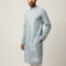 Elevate your ethnic wardrobe with this sophisticated sky blue kurta set. The kurta showcases a stunning, intricate all-over white print that blends geometric patterns with traditional motifs. Tailored for a sharp, comfortable fit, it features a classic Mandarin collar and full sleeves. Paired with crisp, solid white straight-fit pajamas, this ensemble offers a perfect balance of timeless elegance and contemporary style, making it ideal for festive events, family gatherings, or any special celebration.
